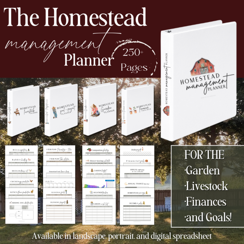 The Homestead Management Planner is a complete planning system designed to help you manage your livestock, garden, finances, and goals — all in one organized place.